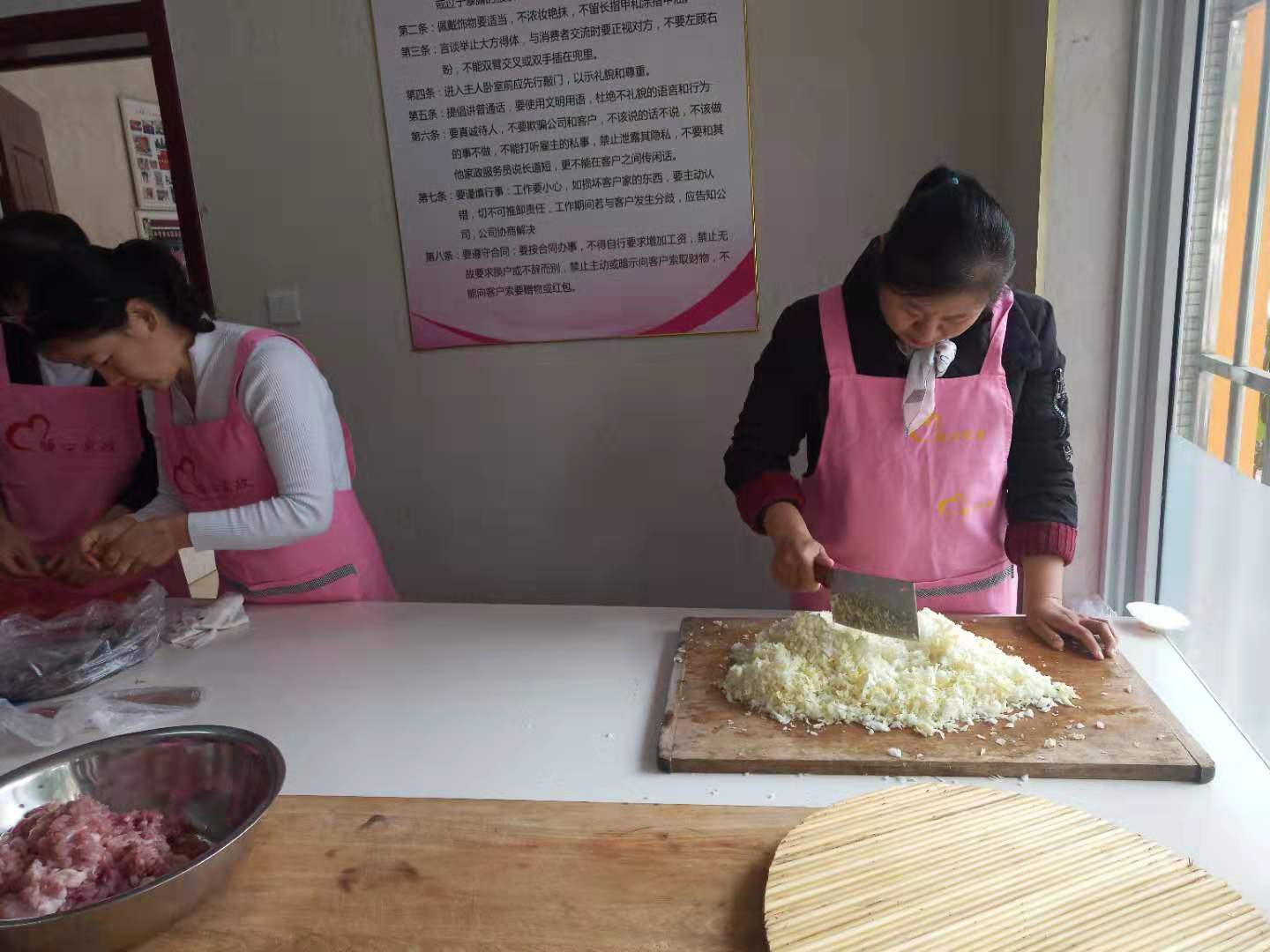 娟姐主動(dòng)攬了發(fā)面的活,接著劉平大姐、鄭維鳳大姐、蓋燕珍大姐、崔曉麗大姐還有李秀梅大姐將各種菜蔬變成餡料,看著她們熱火朝天的勞作著,再聽(tīng)著她們討論交流調(diào)餡和面的小技巧,恨不得端起小本本通通都記下來(lái)。